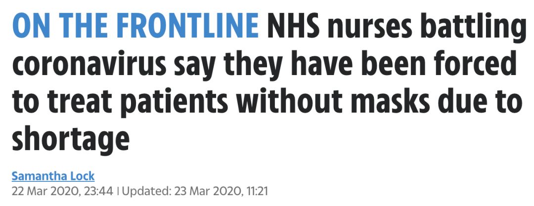 不仅如此,近日,也有越来越多的医护工作者表示个人防护物品“大量短缺”,英国医生协会团体表示,其(医生)成员非常担心病人正处于危险之中,而NHS的工作人员可能也会因此存在生命危险。