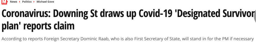 另据英国《泰晤士报》曝光,为了确保如果首相鲍里斯确诊后有接替人选,英国政府已制定了“指定幸存者”计划。