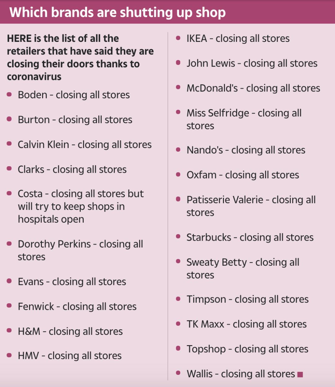 (不完全统计下,英国境内关闭门店的品牌)