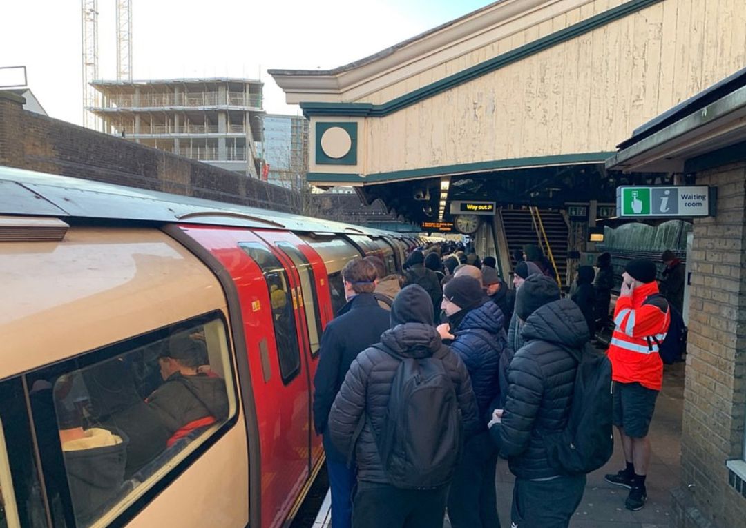 (一名通勤者拍摄的今早Northern线,并在推文中写道:“看不见火车,站台上全是人!”)
