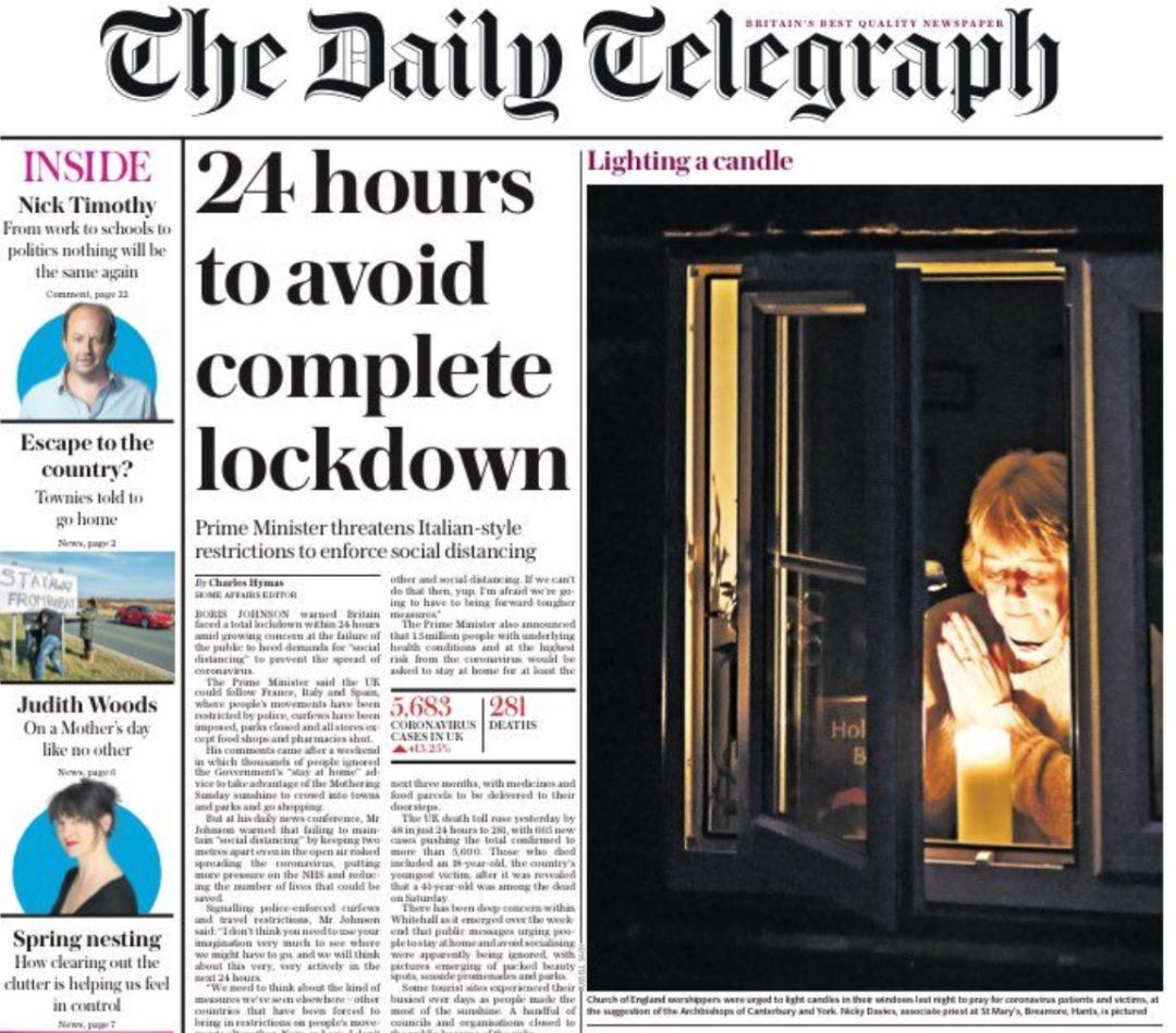 这次具有历史性的讲话宣布,除了食品店和药店,所有的英国商店将被关闭,与朋友见面将被禁止等措施也被宣布,该项禁足计划将被强制执行至少3周。