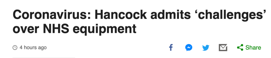 对此,英国卫生大臣汉考克也承认向NHS工作人员提供个人防护装备方面存在挑战,并决心克服这些挑战。