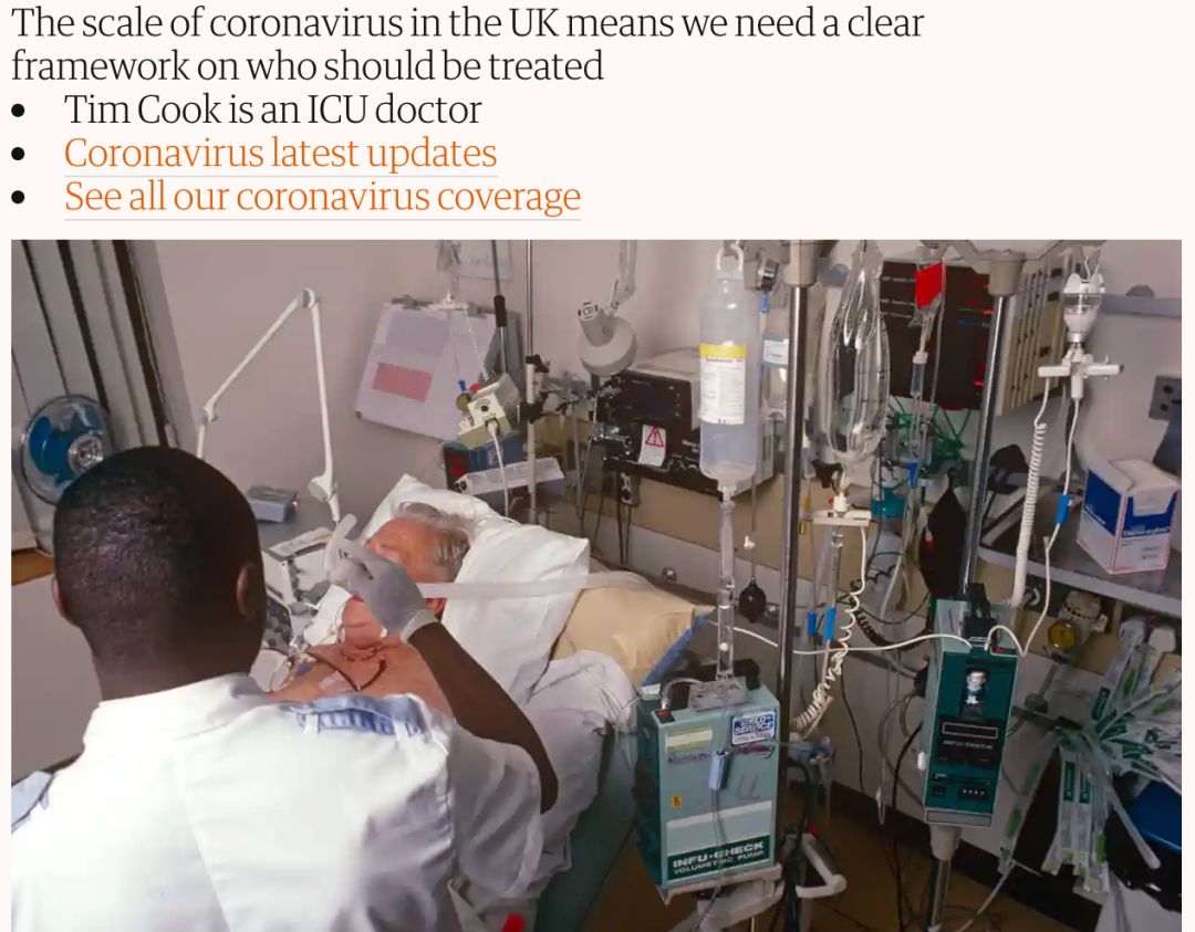 今日,卫报报道了一篇标题名为《英国重症监护室医生现在面临最艰难的决定》的文章。